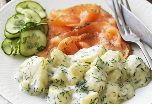 En klassisk nordisk rett som kombinerer den delikate smaken av gravad laks med kremete dillstuvad poteter.