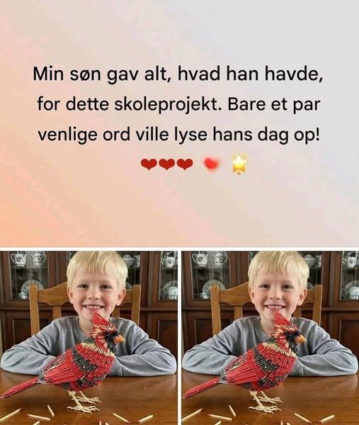 Der findes øjeblikke, hvor et barns indsats og kreativitet fortjener mere end bare en karakter – det fortjener anerkendelse. Dette er ét af de øjeblikke. Min søn gav alt, hvad han havde, for dette skoleprojekt. Bare et par venlige ord ville lyse hans dag op!