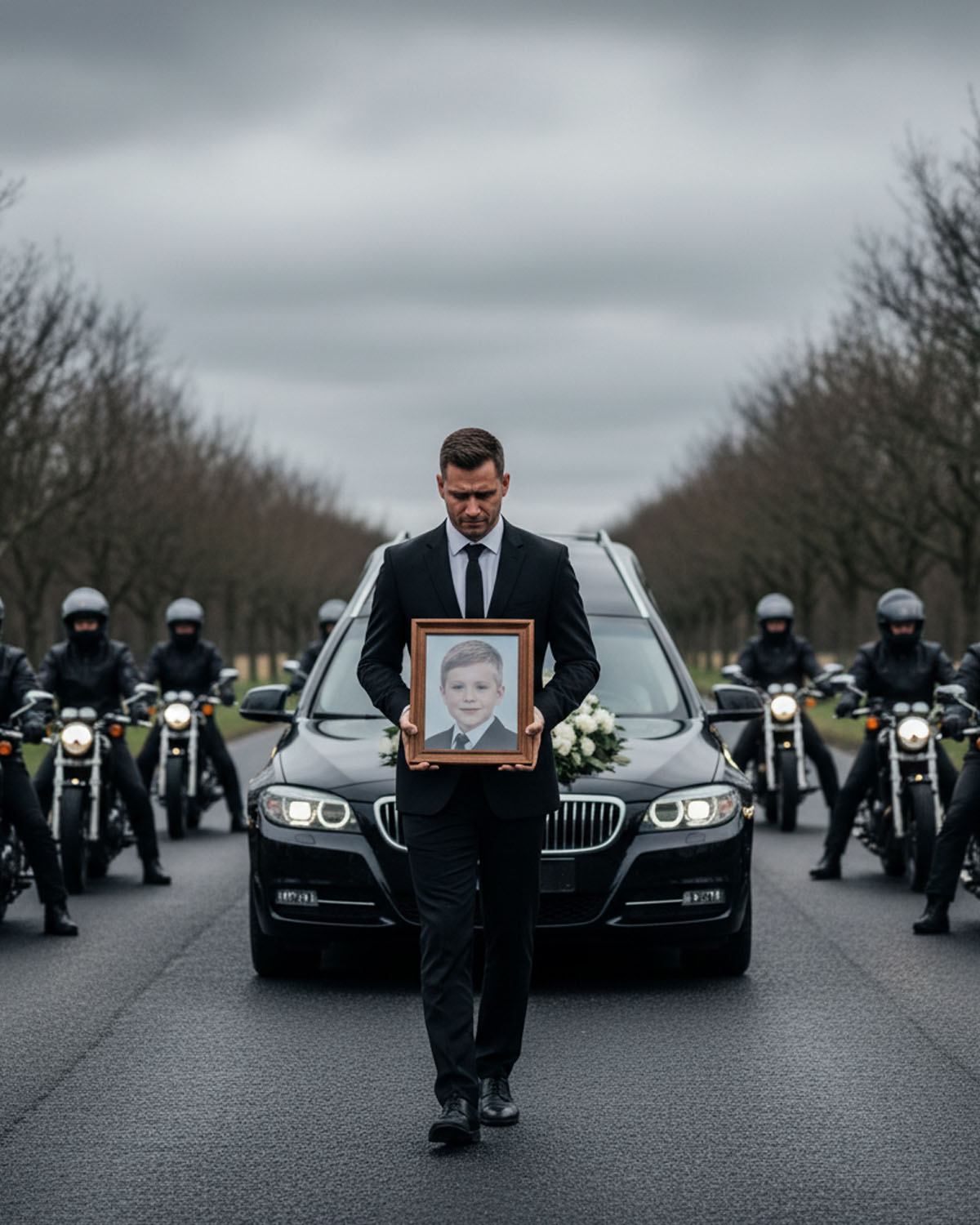 Da kisten ble senket, startet motorene i en lav, rytmisk puls—ikke som et rop, men som et løfte. En etter en la motorsyklistene hånden på hjertet. Noen gjorde korsets tegn. Noen sto bare stille, med øynene lukket.
